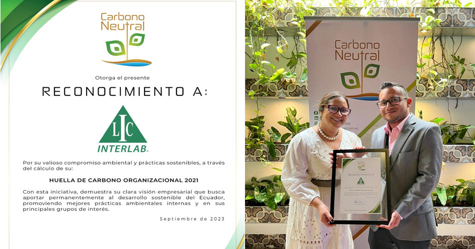 El pasado lunes 25 de septiembre Carbono Neutral reconoció el esfuerzo, la voluntad y el compromiso que ha tenido Interlab al calcular su Huella de Carbono Organizacional.